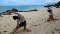 朝の光がさしこむ、朝日を眺めながらのビーチでヨガで心も体もリラックス、リフレッシュ。また、スタンドアップパドルボードを使ってのSUPヨガ。真っ白なプライベートビーチの砂浜で、ヨガ&ヨガSUPにチャレンジ!心も体もリフレッシュ出来ます。