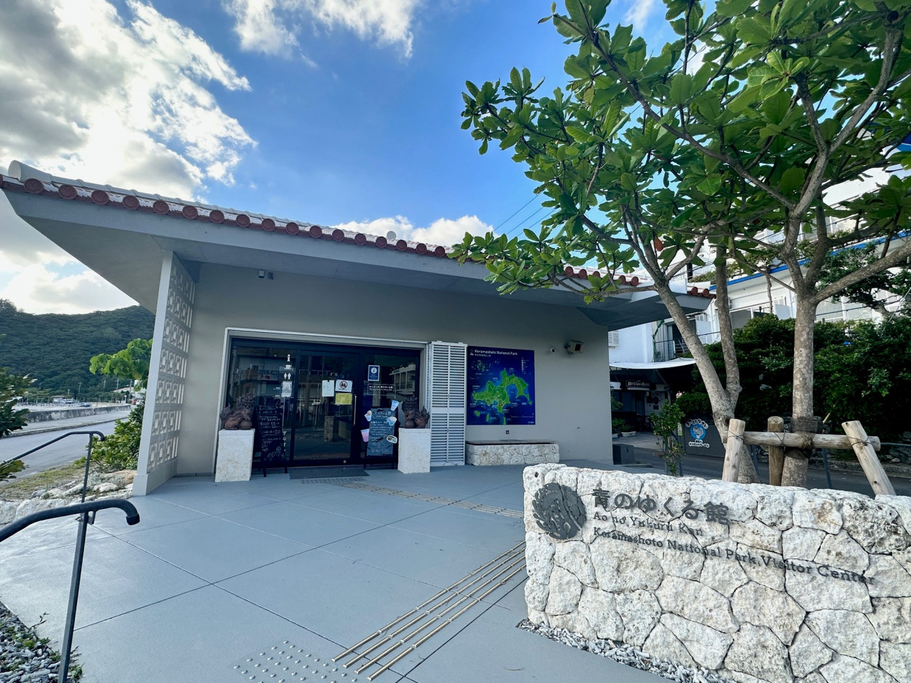 港からあるいてすぐの場所にある環境省のビジターセンター青のゆくる館内にあります。