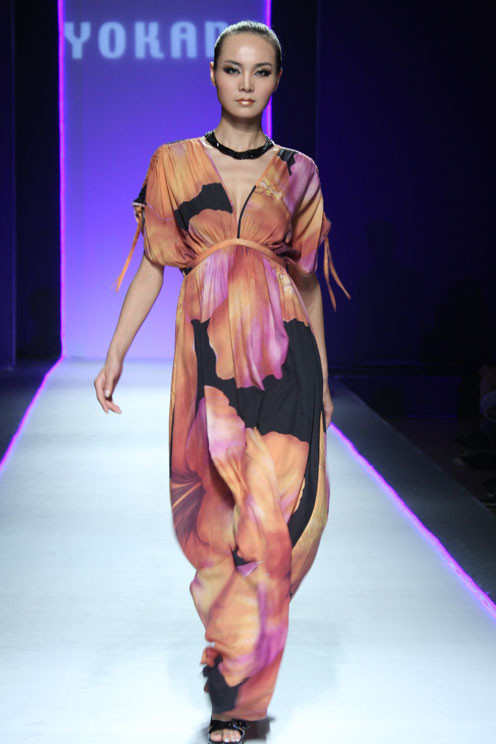 テキスタイルデザイナー田中洋とファッションデザイナー山内カンナの夫婦によるセッションで、沖縄の自然や風景を伝統的な染めの技術で表現するYOKANG。