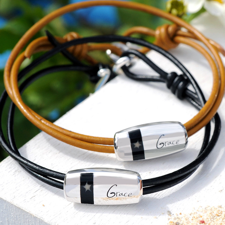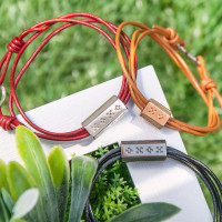 ミンサーモチーフのレザーブレスレット。カジュアルに着けられるのが人気の理由。