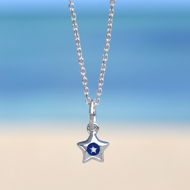 星の砂を埋め込んだ小さな星型チャームネックレス。ギフトにもオススメです。
