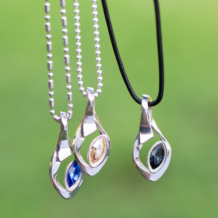 スワロフスキーの色彩感と個性的なフォルムが魅力のペンダントトップ。