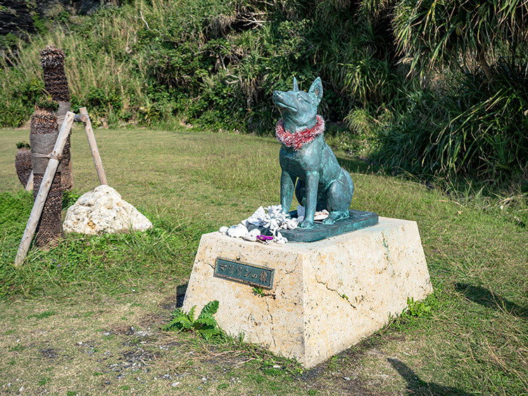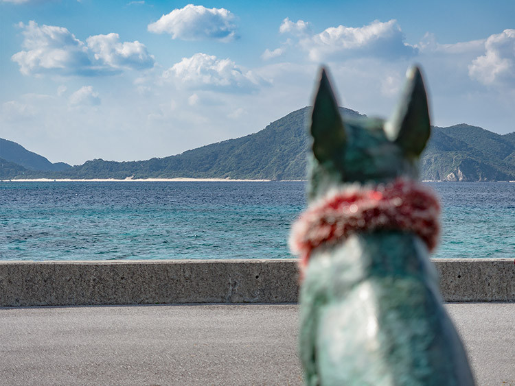 映画「マリリンに逢いたい」は、座間味島にいる犬のマリリン会いたさに、犬のシロが阿嘉島から泳いで会いに行ったという実話をもとにしています。マリリンの像は、シロが阿嘉島からやってくるのを待っている姿で、阿嘉島にあるシロの像の方向を見ているそうです。けなげな純愛を思い浮かべながら、マリリンと一緒に阿嘉島を眺めてみてください。