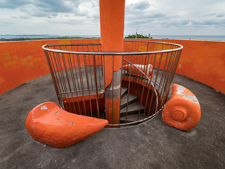 島の高台に建つのは、ニンジンの形をした展望台。なんとベンチもニンジンをかたどっています。最上階までのぼると、沖縄本島はもちろん、集落やニンジン畑、長く伸びるトゥマイ浜も眺めることができます。