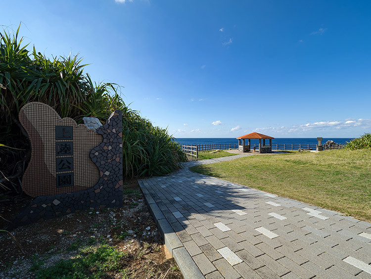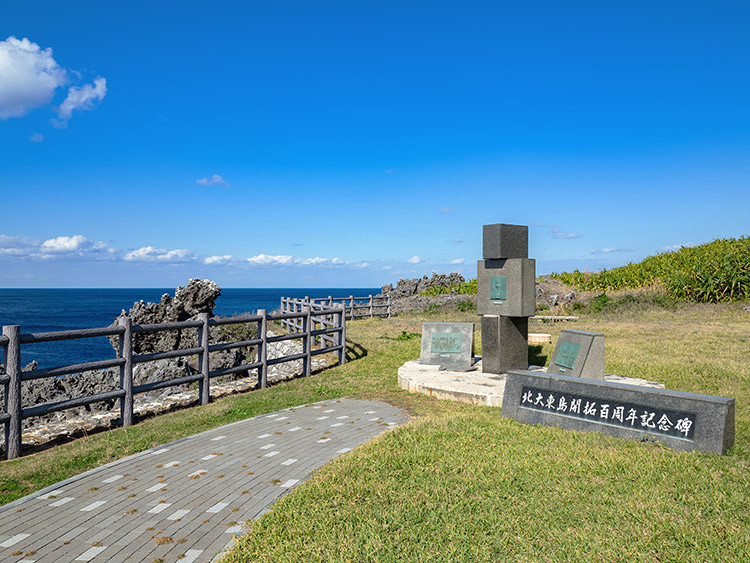 1903年、北大東島を開拓した人々が初めて上陸したこの場所に、開拓100周年記念として、上陸場所を見下ろせる公園が整備されました。海に続く急な坂道を進むと、上陸がいかに困難だったかを想像することができます。また、海の透明度がよくわかる絶景ポイントでもあります。