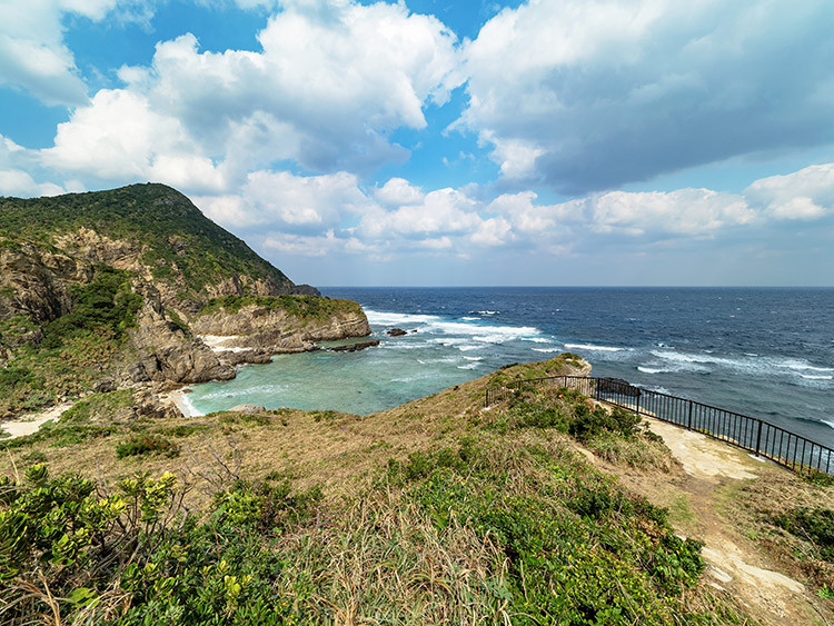 荒々しい崖と水平線を楽しめる展望台で、阿佐集落からは徒歩約10分の場所にあります。晴れた日には海の向こうに粟国島を望むこともできます。荒々しい岩々と透明度の高いケラマブルーの海が織りなす景観は、まさに絶景。座間味島を巡る際には、必ず訪れたいスポットの一つです。