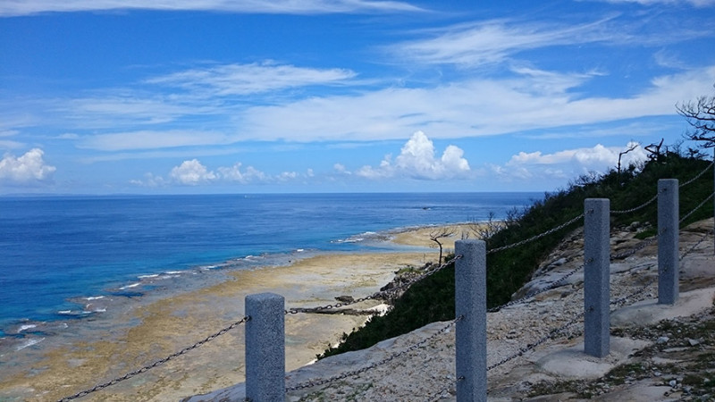 2017年に完成した見花原遊歩道は渡嘉敷島の東側にあります。全長は約1km、ふたつの東屋が設置されています。海風にさえぎられて植物が大きく育たたないため、目の前に雄大な景色が広がっています。もともとあった砂岩を生かした歩道も特徴です。