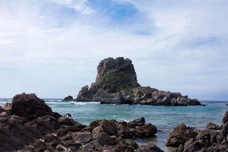 海岸から約50mほど離れた場所にある「ヤヘー岩」は、干潮時には歩いて渡ることができます。太古築城の跡があり、釣りやダイビングの人気スポットでもあります。ただし、歩いて渡るときや岩に登る際には、足元に注意が必要です。