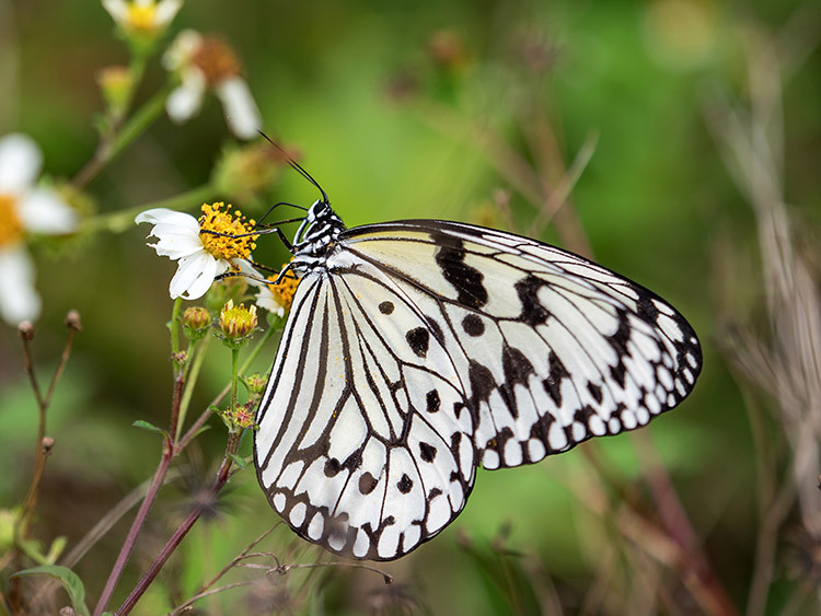 水納島を歩いていると、たくさんの蝶に出合えます。特に、日本の蝶の中で最大級のオオゴマダラが何匹も空を飛ぶ姿に驚きます。ふわり、ふわりと優雅に舞う姿に、思わず見惚れてしまうかもしれません。