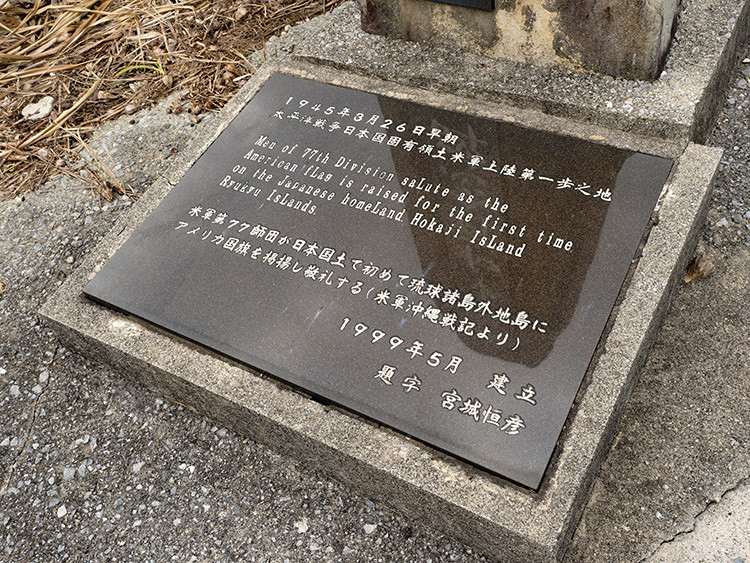 この祈念碑は、先の大戦で米軍が初めて日本国土に上陸した外地島に1999年に建てられました。