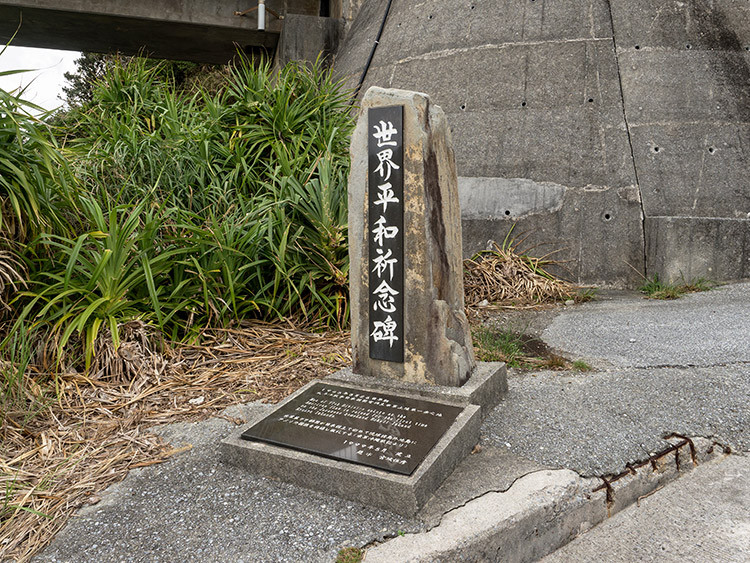 慶留間島から外地島へと渡る慶留間橋を外地島に渡ってすぐ、橋のたもとにひっそりとたたずむ「世界平和祈念碑」。