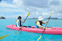 慶良間諸島の海といえば、ダイビングやシュノーケリングというイメージがありますが、透明度の高い海だからこそ楽しめるマリンレジャーといえばシーカヤックも外せません。キラキラと光の弾ける波の上を漂いながら海中の様子をじっくりと観察できるのも、透明度が高い渡嘉敷島の海だから。海底に息づくサンゴや熱帯魚たちの姿を船上から眺めながらパドルを漕いで、ケラマブルーの海を満喫しましょう。