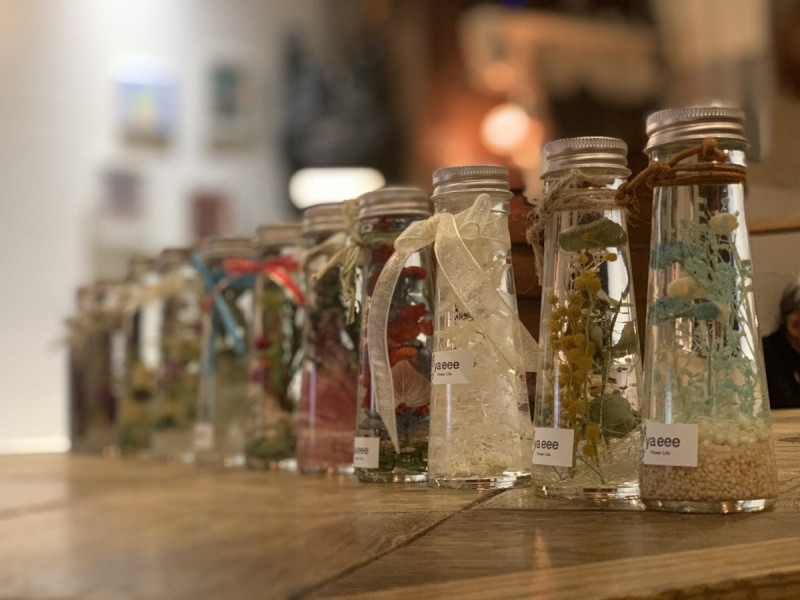 Choose from over 100 kinds of materials yourself. You can choose one bottle of your choice and arrange for yourself from among numerous materials such as Okinawa's Ryukyu glass and star sand, colorful flowers and goya • star fruits.