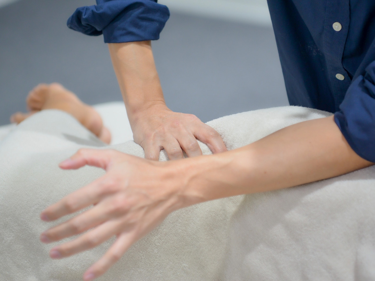 手や指、肘を使って持続的な圧を加え、筋膜組織の癒着やねじれを解いていきます。