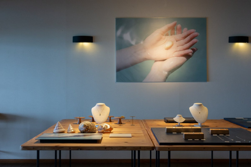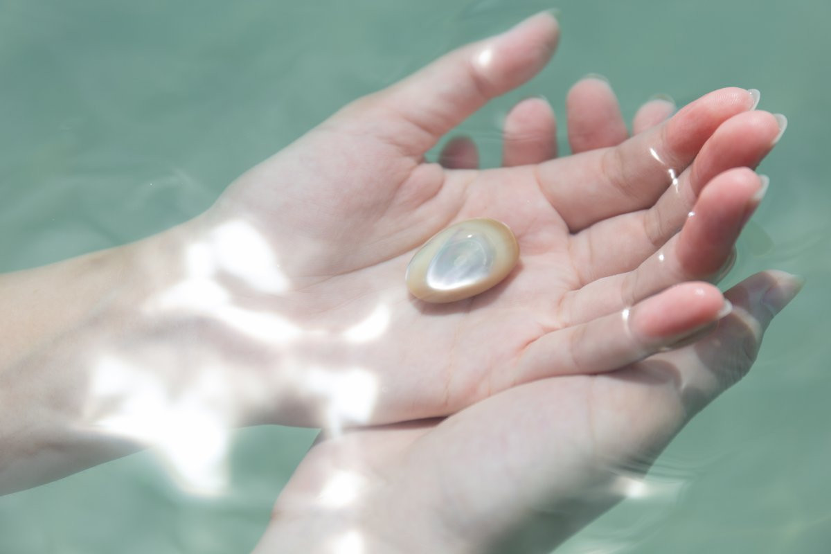 暖かい海で育まれた夜光貝と高瀬貝。ゴツゴツとしたその表面を削っていくと、隠れていた真珠層が顔を出してくれます。3年間でたった7センチ。時間をかけてゆっくりと大きくなるこの貝が秘める緻密で美しい輝きや独特な色合いは、ゆっくりと時間をかけてうみだされた、自然からの贈り物。神の島とよばれる「浜比嘉島」の小さな工房で、その贈り物にそっと息を吹き込むようにして、ひとつひとつ丁寧につくっています。