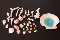 沖縄県北部の離島、伊是名島の浜で採取された貝殻やシーグラスを用いて、自分好みの貝殻アートキャンドルを創作することができます。素材は事前にご自宅へお届けいたしますので、オンラインによる現地