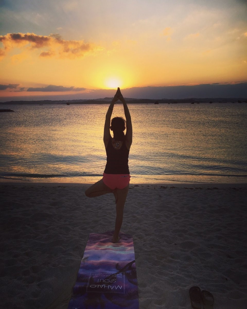 沖縄のビーチから、ヨガレッスンをオンラインでお届けいたします。