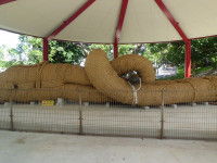 毎年10月に開催される那覇市の伝統行事「那覇大綱挽まつり」で使用される大綱の実物大のモニュメントが、2014年、牧志の希望ヶ丘公園内に完成しました。展示されている大綱は、カヌチ(頭)部分のみとなっていますが、男綱(をぅーんな)と女綱(みーんな)を合わせて長さ10m、重さが約7tとなっています。「那覇大綱挽まつり」で使用されている綱は、「嘉例綱(かりーじな)」と呼ばれ、幸福・平和・繁栄をもたらすと言われています。
