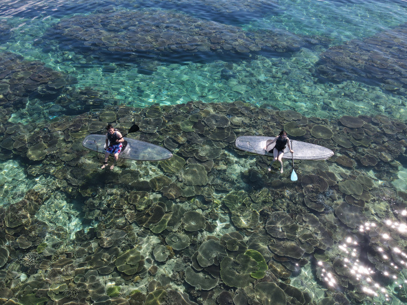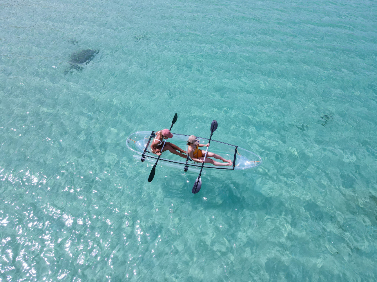 カヤックがオールクリアな『クリアカヤック』でツアーを行います。