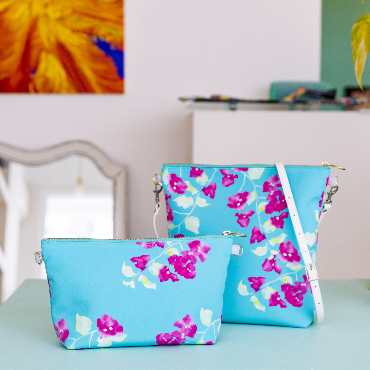 眩しいほどの沖縄の強い太陽の光、目を奪われる鮮やかな花、そしてどこまでも続く青い海や空。沖縄の素晴らしい自然にインスピレーションを受け、『taion』のテキスタイルを描いているのは画家のLee yasumitsuさん。リゾート感あふれる大胆な柄を身にまとえば、ラグジュアリーな非日常感に包まれ、バカンスを楽しむにはもってこい。ゆったりと、ゴージャスな時間を過ごすのに一役買ってくれるアイテムです。