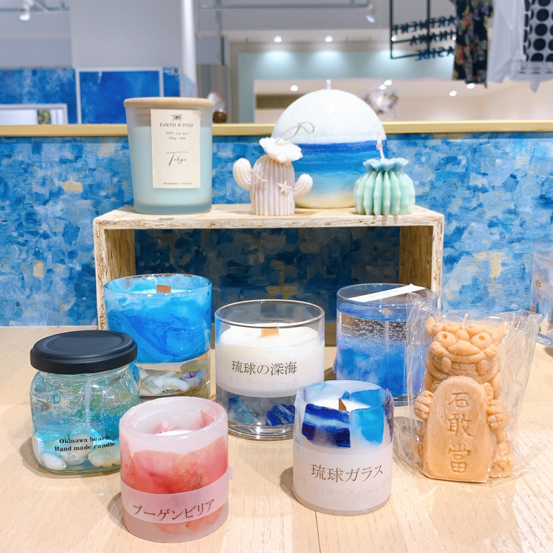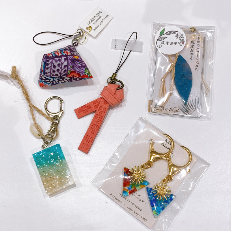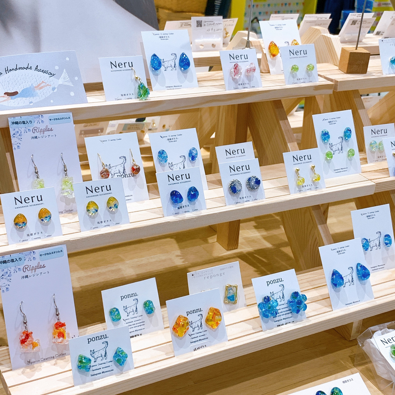 琉球ガラスやホタルガラスアクセサリー、波アートアイテム、ブーゲンビリア、やちむんなど沖縄らしいアイテム100種類以上展開。全て県内外の作家様の手作りでてきております。世界に一つだけのお気に入りのギフトが見つかりますように。