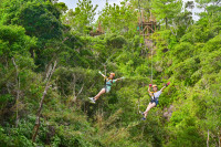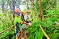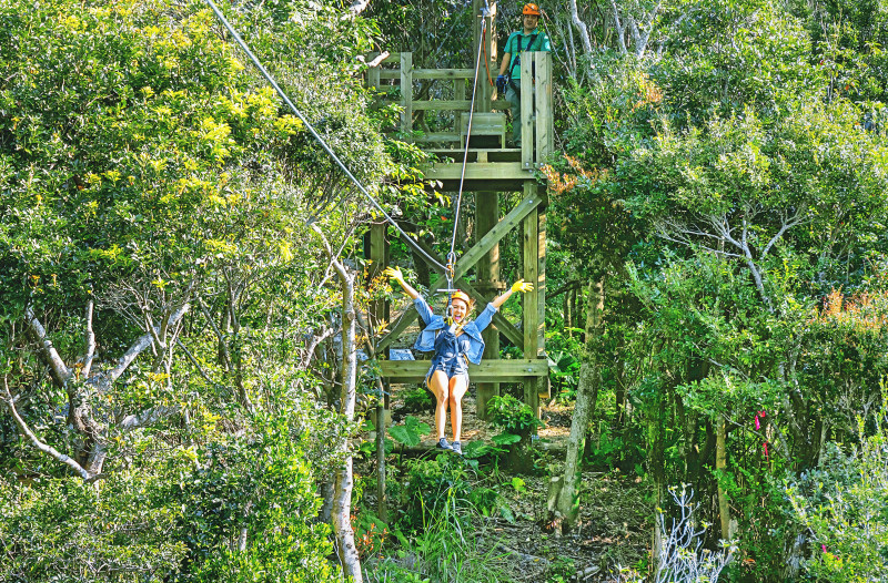 亜熱帯の広大な森を空の上から眺める空中散歩「ジップライン」が楽しめるヤンバルンチャー。滑走の前にはガイドがしっかりと安全講習を行うので初心者でも安心。お子さま(身長120cm以上、体重25kg以上)でも保護者同伴で安全に遊ぶことができます。ジップラインの他にも、4輪「バギー」に乗ってジャングルを走るバギーライドツアーや、隣接するコーヒー園でコーヒー豆の収穫や焙煎体験ができるなど、大自然に恵まれた場所でとっておきの時間を過ごすことができます。