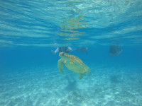 ビーチエントリーのシュノーケリングツアーでは、ウミガメに会える確率はなんと90%!