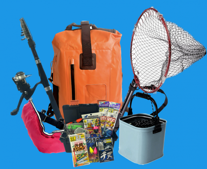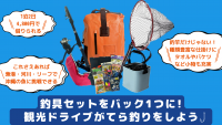 釣りに必要なありとあらゆるものが1つのバッグに詰め込められているため、手ぶらですぐ釣り体験ができます。