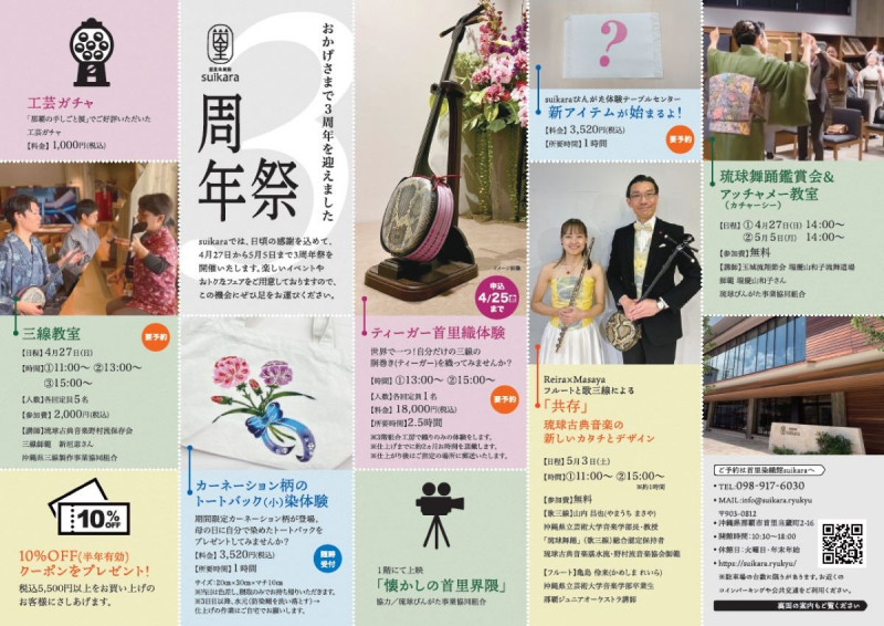 3周年祭4・/27と5月5日の参加費無料は、琉球舞踊鑑賞会&アッチャメー(カチャーシー)教室のみ