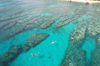 珊瑚礁や熱帯魚が美しく広がる水中世界と