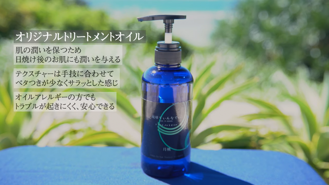 沖縄産の植物オイルを使い、伝統的な音楽を流しながら行われる沖縄発祥の独自トリートメント【琉球てぃんなでぃ】。