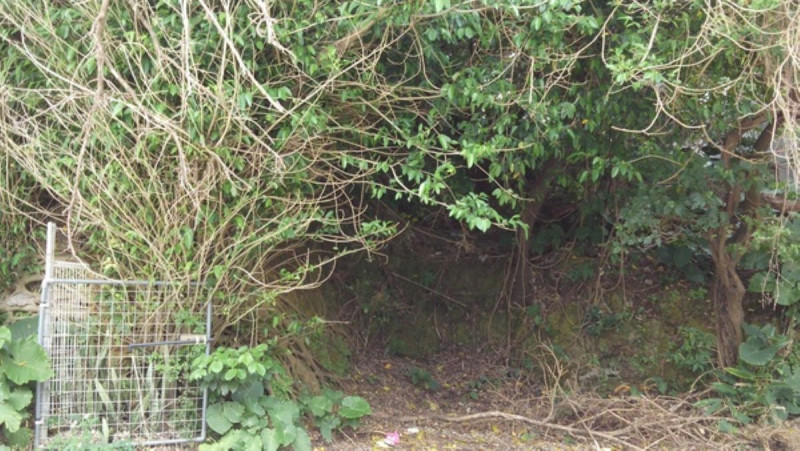 美栄橋駅のすぐ近くに幽霊伝説と地名の由来となった岩山が現存する。