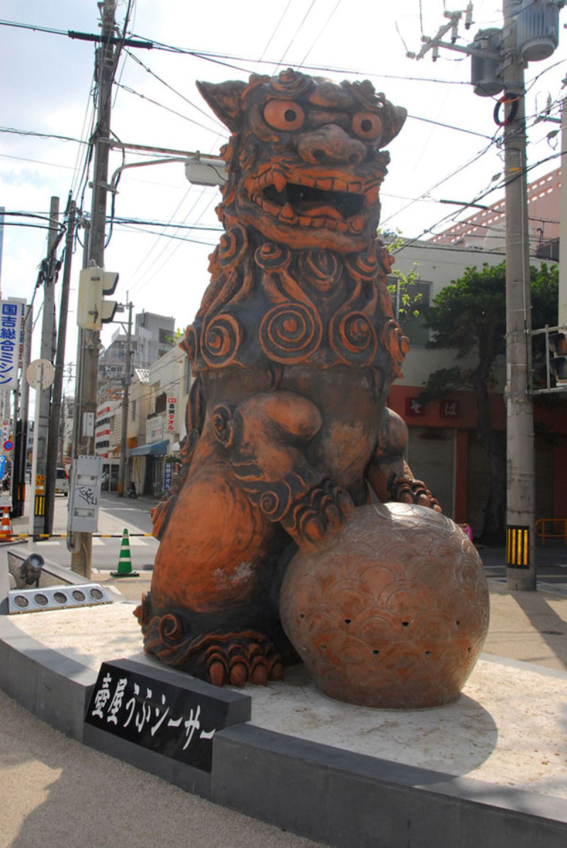 さいおんスクエアにある「さいおんうふシーサー」とは兄弟。琉球王国時代から300年以上続く壺屋焼きの巨大シーサー。壺屋の陶工達により作られ、町のシンボルとして2013年2月9日に設置された。定期的に口から水煙を吐くので子供達に人気。案内板のボタンを押すと、沖縄方言で音声案内が流れる。「うふ」とは沖縄方言で大、大きいという意味。町の守り神として住人や来訪者を見守っている。シーサーはライオンをモデルとする架空の動物で古代オリエント地方から中国を経て琉球王国に伝わった。