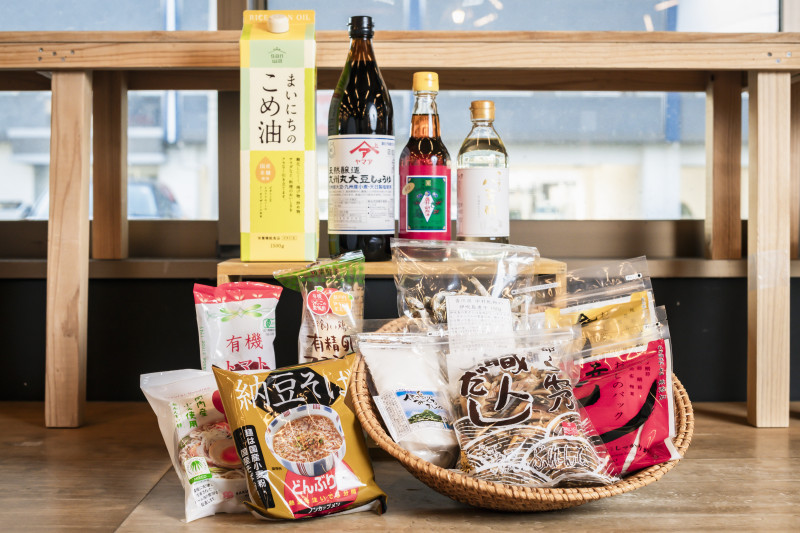 広々とした店内。新鮮な野菜をはじめ、スタッフがセレクトした食品や雑貨を豊富に取り扱っています。木材を基調とした温かみのある空間で時間を忘れてゆっくりお買い物が楽しめる。