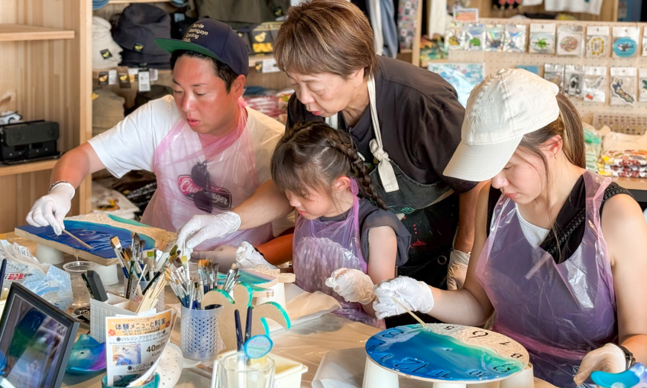 アメリカンビレッジ近くで、沖縄の思い出を"カタチ"に残す、屋内型レジンアート・キャンドル体験工房。4歳から楽しめる、天候に左右されない完全屋内施設です。