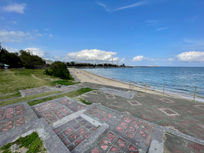 人工ビーチとは思えない自然な環境で、真っ白い砂浜とコバルトブルーの海を楽しめます。 シュノ―ケルは使用禁止だが、市街地で気楽に海水浴が楽しめる穴場です。