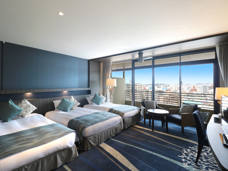 空港から車で約7分の那覇市のベイエリアに佇む「ロワジールホテル 那覇」。モノレール駅(旭橋駅)や国際通りに比較的近く、旅行やビジネスにも大変便利な場所に位置します。沖縄では数少ない源泉かけ流しの天然温泉や温泉水を利用した屋内クアプール、小さなお子様も楽しめる屋外プール、美しいサンセットが楽しめるBBQテラスやBAR、大小の宴会場施設を備えたシティリゾートホテルです。ベビーやキッズアイテムなども充実し、小さなお子さま連れの旅行にも安心して滞在できるサービスがそろっておりファミリーにも人気です。
