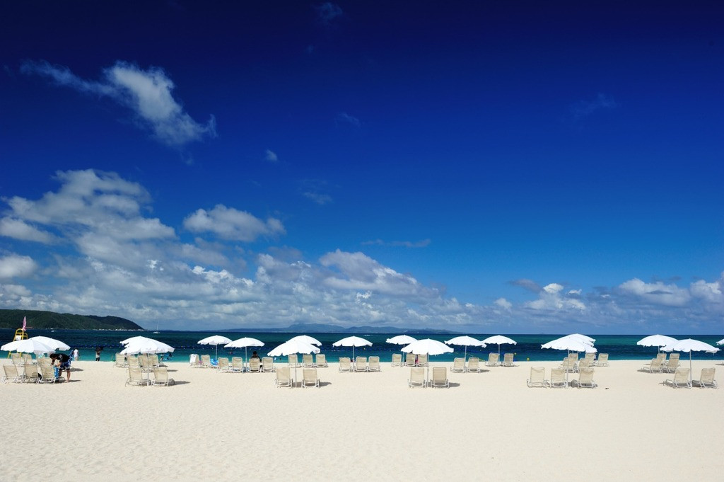 オクマの碧い海と白砂のビーチを表現した、ブルーとホワイトを基調とした明るく開放的なお部屋です。