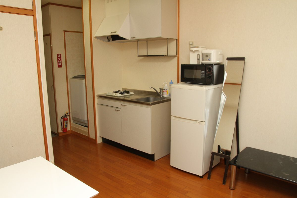インターネット(無料Wi-Fiあり)・ガスコンロ・電気ポット・炊飯器・電子レンジ・冷蔵庫・洗濯機・冷暖房・テレビ・掃除機・ユニットバス・ベット・寝具(掛け布団・枕)・1階正面玄関オートロック・エレベーター