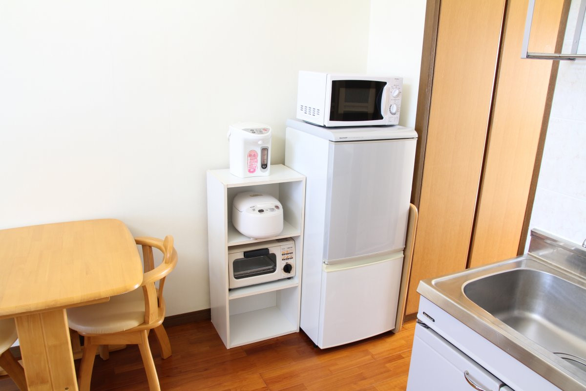 I・Hコンロ・電気ポット・炊飯器・電子レンジ・冷蔵庫・洗濯機・冷暖房・テレビ・掃除機・ユニットバス・トイレ(温水洗浄便座付きのお部屋有り)・ベット・寝具(掛け布団・枕)・1階正面玄関オートロック・エレベーター・1階に乾燥機(有料)・インターネット(有線LANにて利用可能)