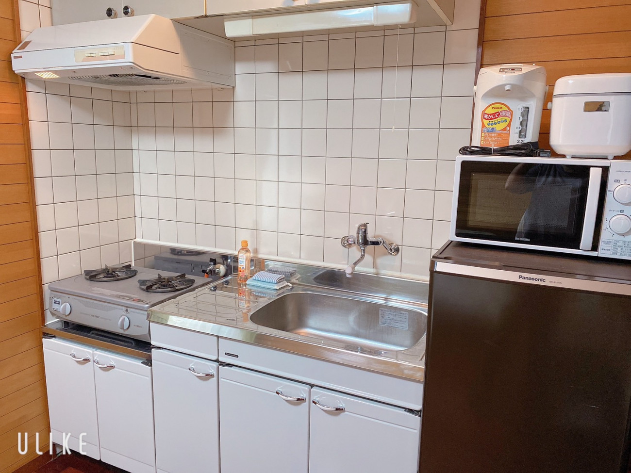 2口ガスコンロ・電気ポット・炊飯器・電子レンジ・冷蔵庫・洗濯機・冷暖房・テレビ・掃除機・ユニットバス・トイレ・ベット・寝具(掛け布団・枕)・1階正面玄関オートロック