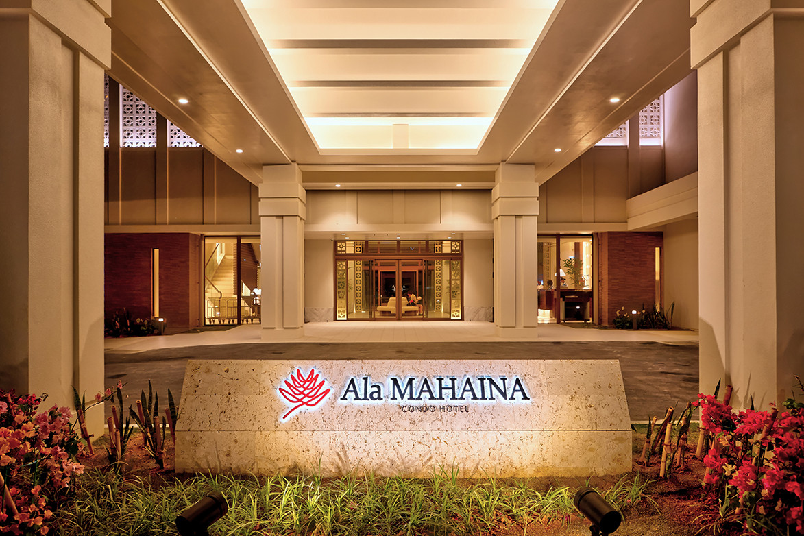 いらっしゃいませ。「アラマハイアナ コンドホテル」正面玄関。