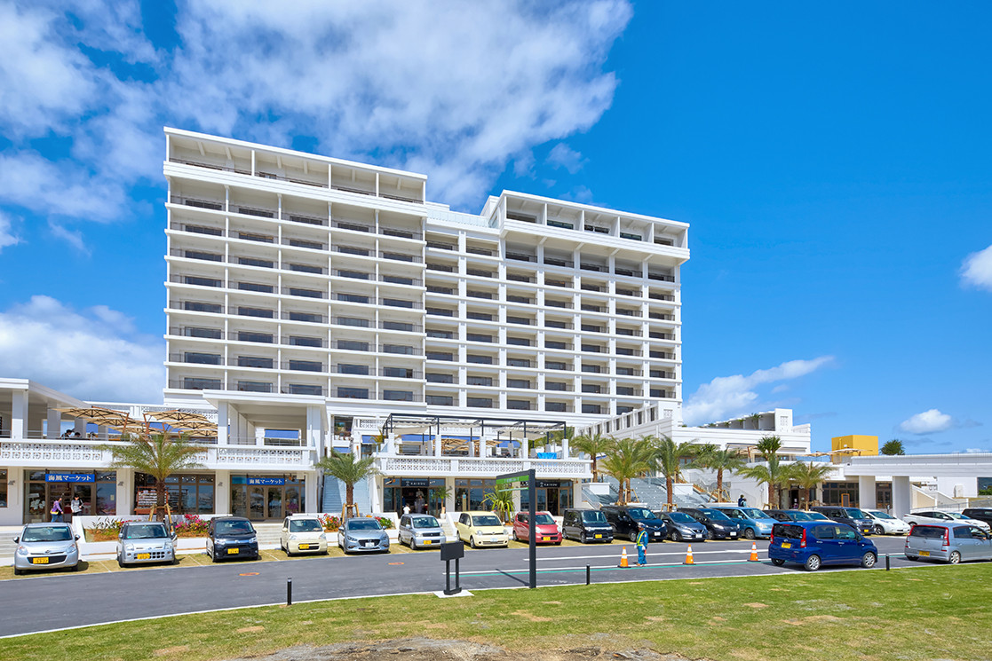 全室オーシャンビュー、キッチンを完備しておりますので長期のご滞在にもお薦めです。海と空が一体となった空間が楽しめる「インフィニティプール」、天空からの眺めを体験しているかのように感じる「展望大浴場」、「フィットネスジム」「ランドリールーム」と施設も充実。メインダイニング やんばるビストロ「ルアナ」では、旅先での楽しみの一つでもある「食」を大切に考え、地元素材をふんだんに使った多彩なメニューをご用意。美ら海を眺めながらオキナワグルメをお楽しみいただけます。また、慣れない旅先でも我が家のようにホッと安心できる場所になれるよう、心がこもったさり気ないおもてなしをご提供いたします。敷地内には「オキナワ ハナサキマルシェ」が併設しております。