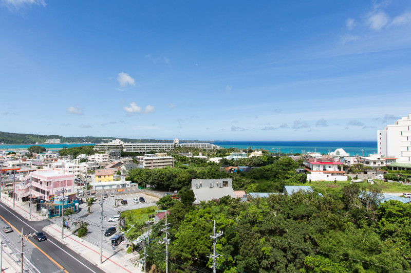 恩納村の飲食店やお土産屋が多い地域に建ちながら、白砂のビーチにもほど近い希少な物件です。