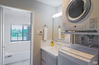 お風呂場とは別でシャワールームあり、トイレも2ヶ所あり大人数でも慌てず利用可能。洗濯機、ガス衣類乾燥機、キッチンには調理器具や食器類も揃えており長期滞在にも向いてます。