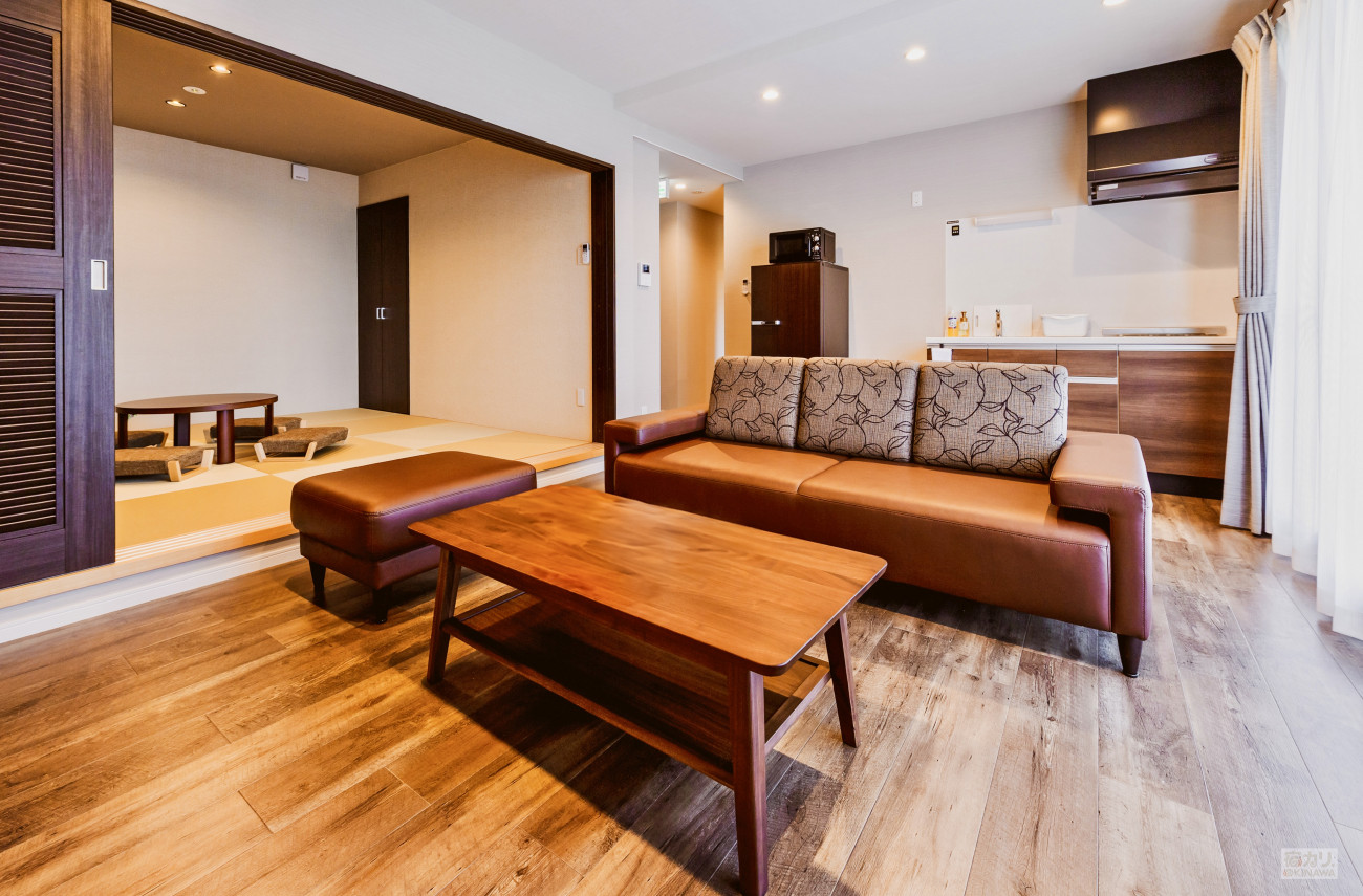 お部屋は和モダン、畳のイ草香りがする癒しの空間で全4室(2階、3階)最大8名様まで宿泊可能。和洋室なので、お子様連れのご家族でも安心して寛げ、仲間同士とグループでの滞在にも最適です。