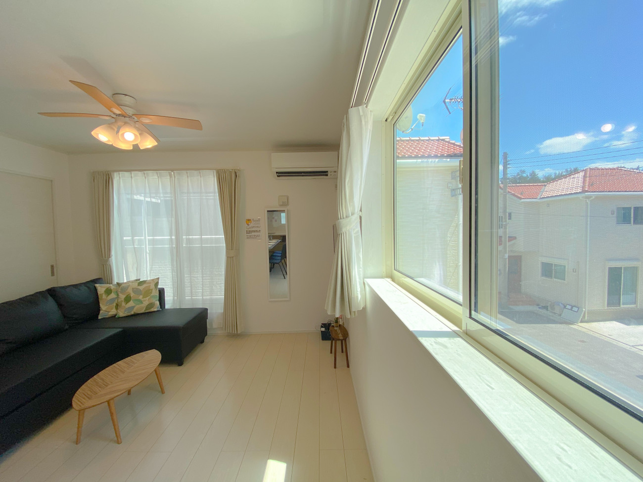 道路を挟んだ向かい側には白砂のプライベートビーチが一面に広がっているので、玄関を出てみると優しい波の音が聞こえてきますよ。