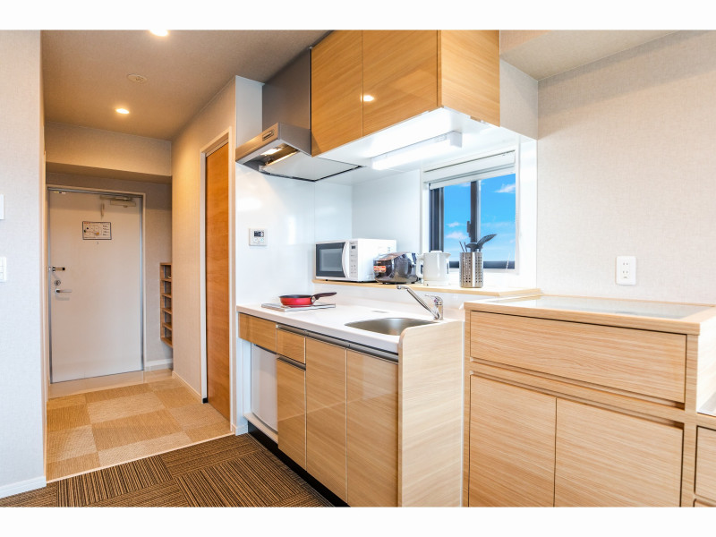 お部屋に洗濯機やガス乾燥機、ミニキッチンも揃ったお部屋は、ご自宅のようにリラックスしていただけるように、くつろぎの空間をご用意しました。アクティブに過ごす沖縄で便利で快適なお時間を!
