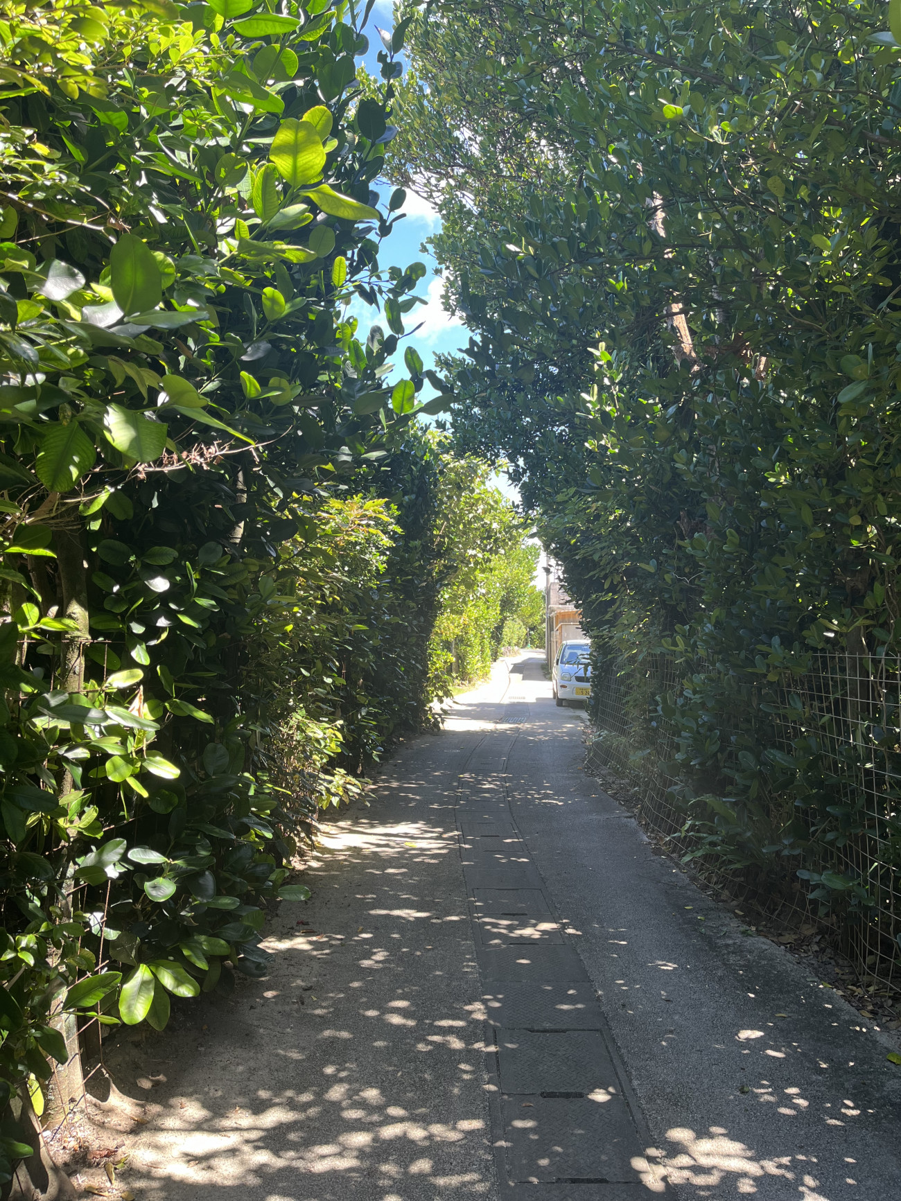 Fukugi INNは、フクギ並木が印象的なゆったりと落ち着いた住宅地内にあり、