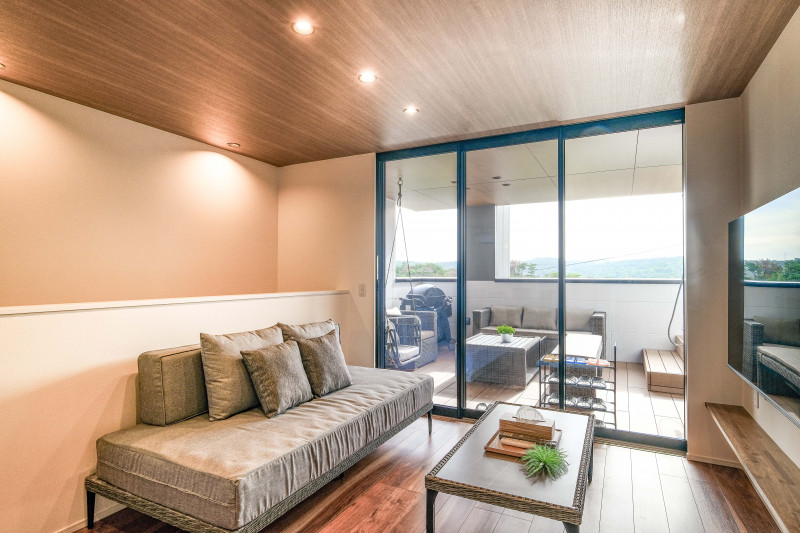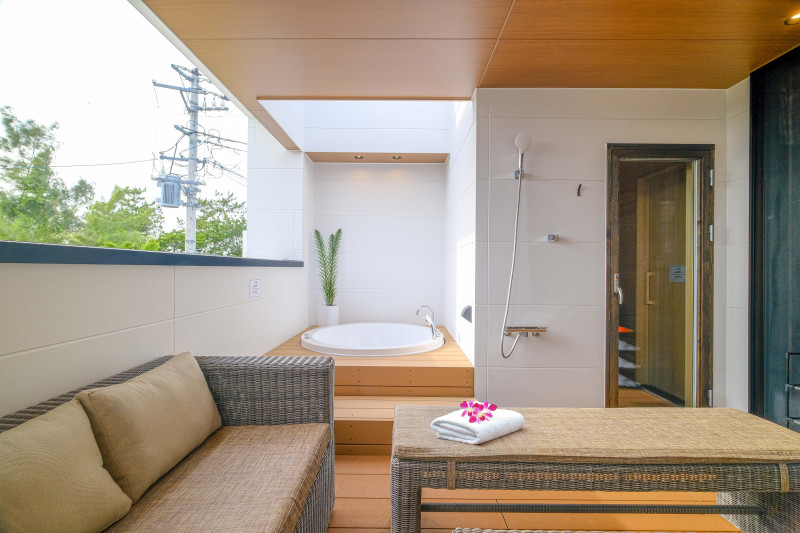 アウターリビングにはBBQコンロ、温浴も可能なジャグジー、ロウリュウサウナが完備!
